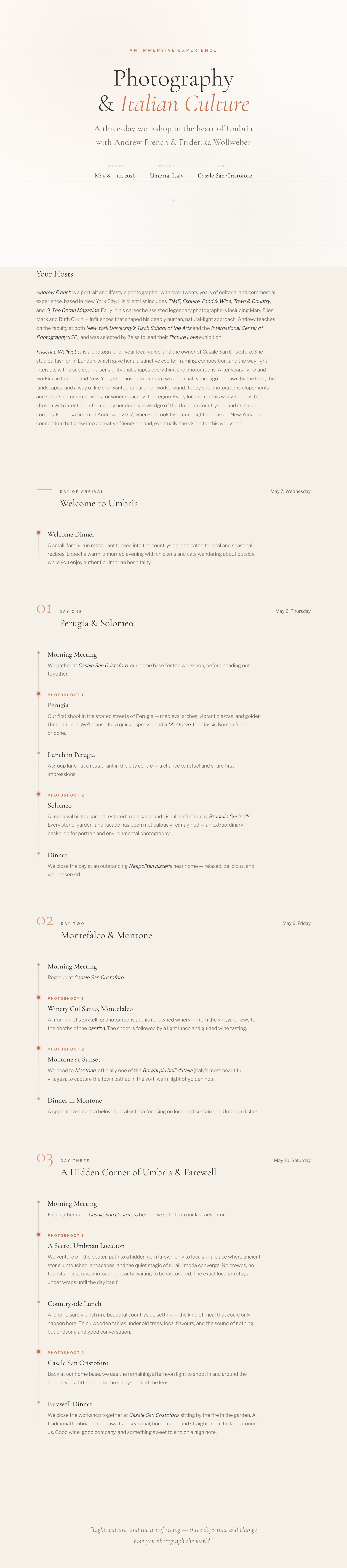 Umbria Photo Workshop Schedule